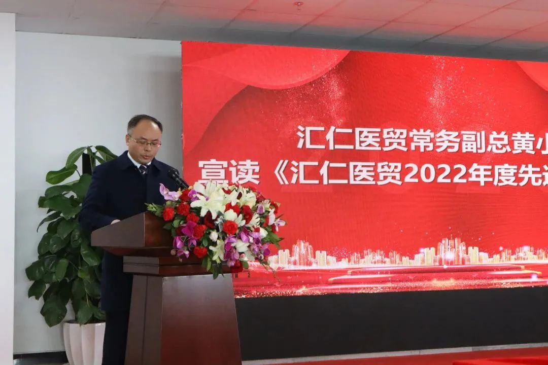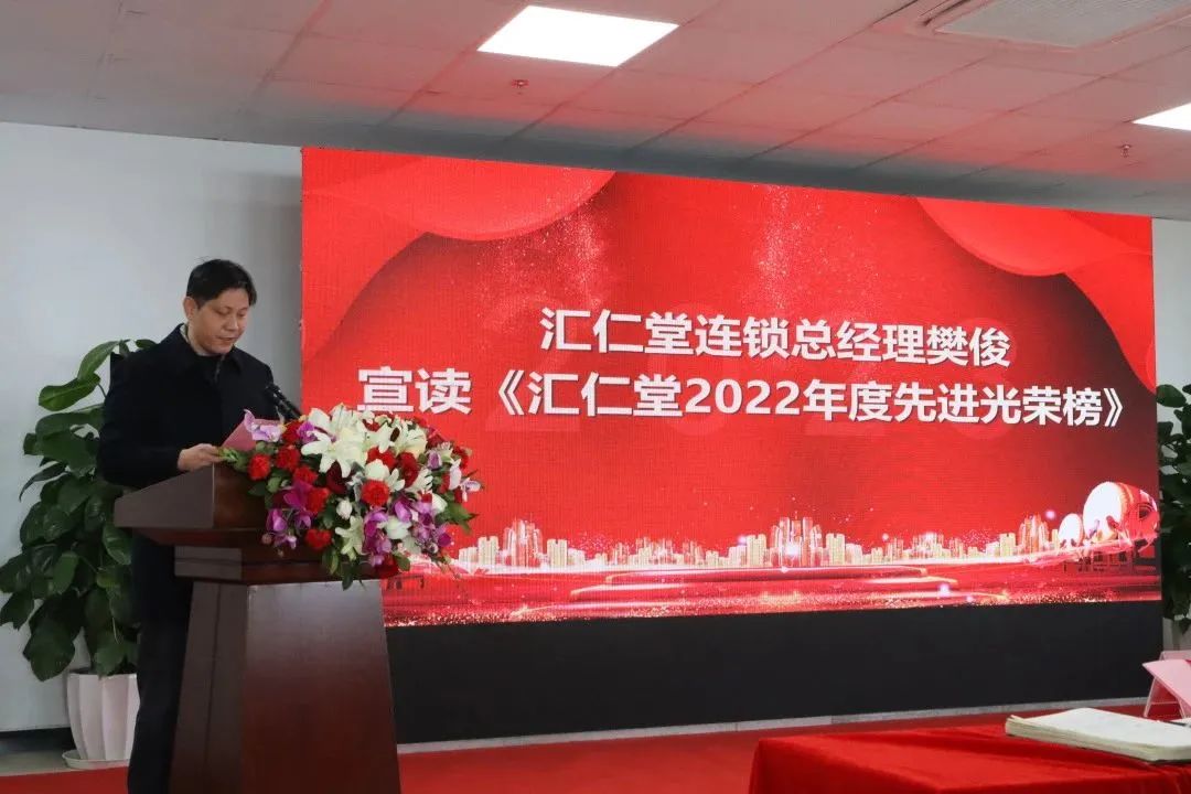 2022年,全體匯仁仁同舟共濟(jì)、毅勇向前,為公司高質(zhì)量發(fā)展加碼助力,在此期間,涌現(xiàn)出一批善謀實(shí)干、勇于擔(dān)當(dāng)?shù)南冗M(jìn)集體與個(gè)人。會(huì)上,匯仁堂連鎖總經(jīng)理樊俊宣讀了《匯仁堂連鎖2022年先進(jìn)光榮榜》,匯仁醫(yī)貿(mào)常務(wù)副總經(jīng)理黃小峰宣讀了《匯仁醫(yī)貿(mào)2022年先進(jìn)光榮榜》。