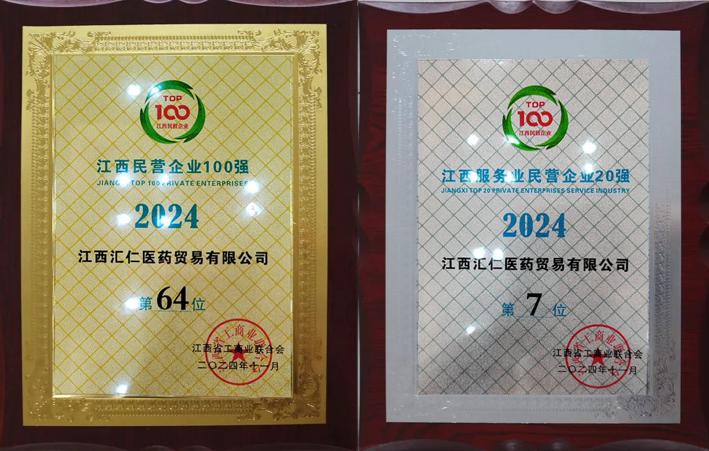 匯仁醫(yī)藥蟬聯(lián)2024年江西民營企業(yè)100強、民營企業(yè)服務業(yè)20強!