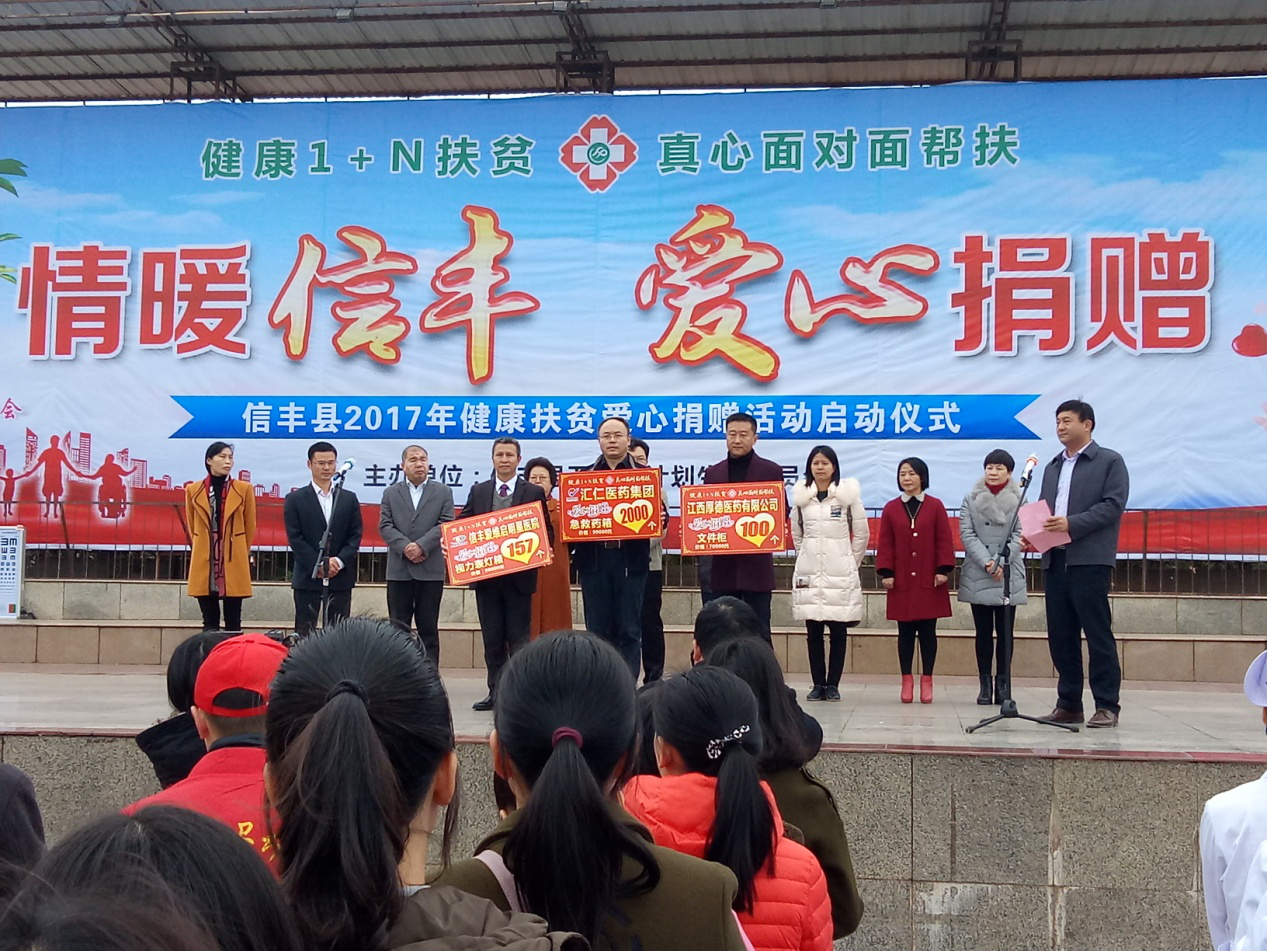 匯仁醫(yī)藥作為江西省醫(yī)藥商業(yè)行業(yè)的企業(yè),在發(fā)展自身的同時,也不忘記自己的社會使命,一直積極參與各種健康扶貧活動。此次,匯仁醫(yī)藥積極響應(yīng)信豐縣政府、縣衛(wèi)計委的號召,積極參與到信豐縣健康扶貧的活動中來。匯仁醫(yī)藥常務(wù)副總黃小峰、贛州銷售中心總經(jīng)理廖萬玉、信豐分公司總經(jīng)理付桃兵等各位公司領(lǐng)導(dǎo)親臨捐贈儀式現(xiàn)場,黃總代表匯仁醫(yī)藥向縣貧困戶捐贈愛心急救藥箱2000個,黃總在捐贈儀式上代表企業(yè)發(fā)言,說:“健康扶貧是一個龐大的系統(tǒng)工程,涉及面廣、工作量大,這不僅僅是政府部門單方面的工作,作為當?shù)蒯t(yī)藥企業(yè)的我們更應(yīng)責無旁貸,需以高度的責任擔當,盡己所能。江西匯仁醫(yī)藥自2001年成立以來,始終秉承‘仁者愛人、健康為本’的理念,牢記公司使命,以人類健康事業(yè)為己任,致力于為全省人民提供優(yōu)質(zhì)、高效、快速的醫(yī)藥配送服務(wù)。”
