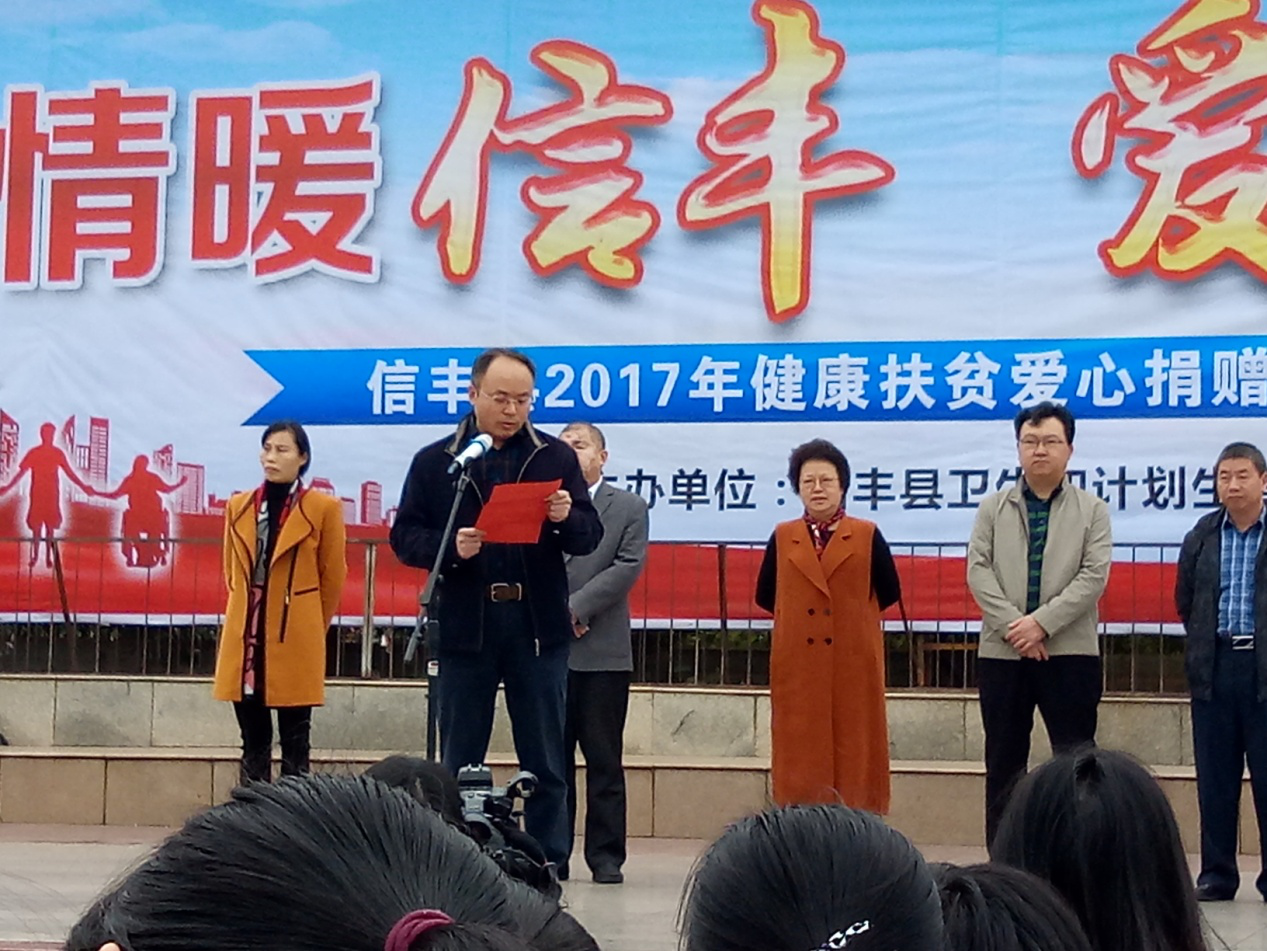 11月23日,冬天的早晨寒風凜冽,但是在信豐縣陳毅廣場上,一場令人倍感溫馨、心情激動的健康扶貧愛心捐贈儀式正式啟動了。扶貧工作一直是國家的頭等大事,也是各級政府重要的民生工程,國家衛(wèi)生部、國家食品藥品監(jiān)督管理總局等部門聯(lián)合主持的“中國健康扶貧工程”,旨在通過開展系列化公益服務(wù)項目,推動中國基層及農(nóng)村貧困地區(qū)的醫(yī)療衛(wèi)生保健事業(yè),縮小城鄉(xiāng)居民的健康差距,改善弱勢人群的生存質(zhì)量,彰顯“人人健康”的社會公平與公正,逐步消除因生病導(dǎo)致貧困和因為生病而貧困。